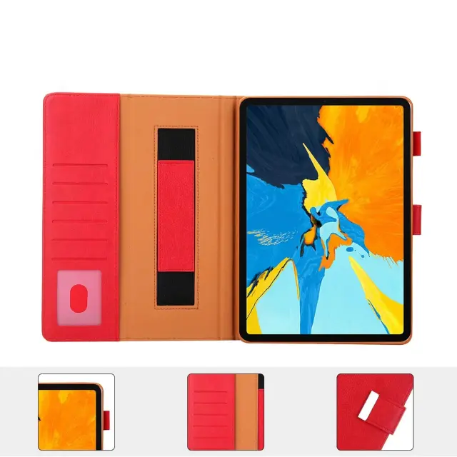 Eleganten zaščitni etui tipa denarnica za iPad 9,7" (2016) predstavlja premišljeno kombinacijo sloga, funkcionalnosti in zanesljive zaščite za vašo napravo. Izdelan je iz visokokakovostnega sintetičnega usnja, ki zagotavlja dolgotrajno vzdržljivost in visoko stopnjo udobja pri vsakodnevni uporabi. Preklopni mehanizem učinkovito ščiti zaslon pred praskami, medtem ko notranji žepi omogočajo varno shranjevanje kartic, dokumentov ali pomembnih zapiskov. Rdeča barva izdelku doda poseben značaj, klasičen dizajn pa poskrbi, da je etui primeren tako za profesionalno delovno okolje kot za prosti čas.