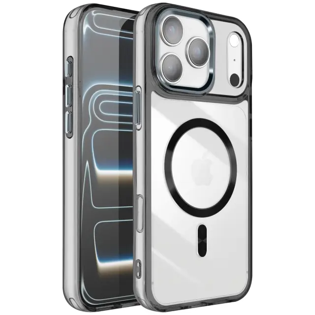 Etui za iPhone 17 Pro Max Crystal Color Collection Združljiv MagSafe, Črna