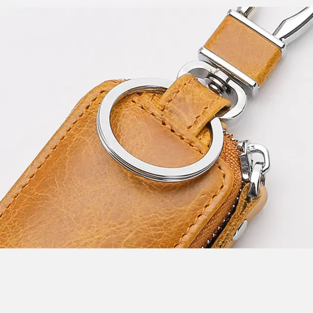 Visokokakovostno usnje: Ta etui za ključe je izdelan iz vrhunskega oljno-voskanega usnja, znanega po svojem razkošnem občutku, elegantnem videzu in dolgotrajni izvedbi. Naravna zrna usnja poudarjajo njegov vizualni videz, zaradi česar je vsak etui za ključe edinstven.