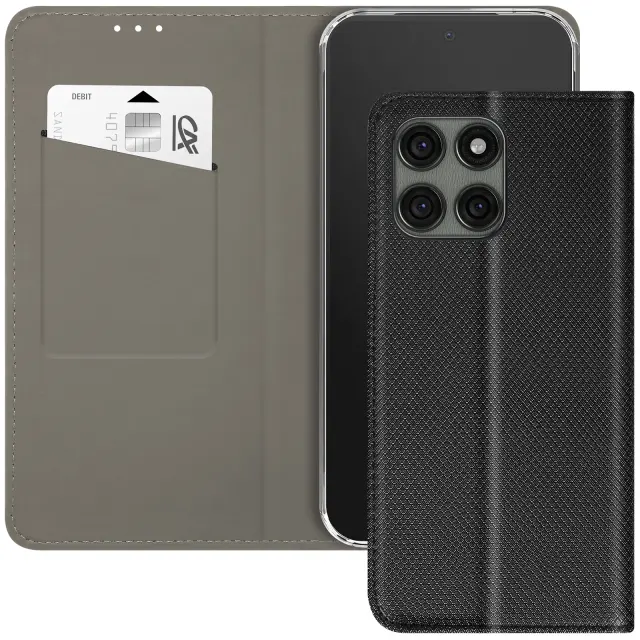 Etui za Motorola Edge 60 Pro, teksturiran, črtast z držalom za kartice, Črna