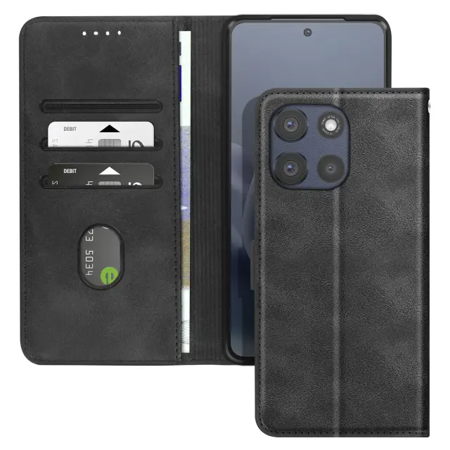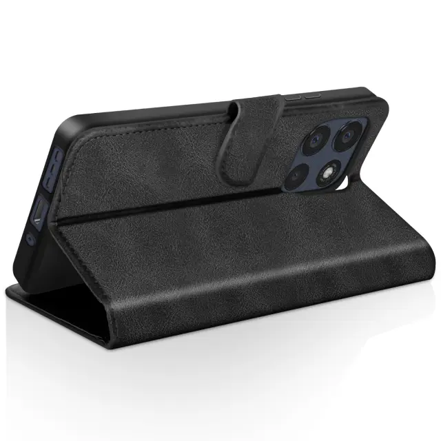 Tri reže za kartice in stranski žep za vstopnice ali račune. Vgrajena video podpora za udobno gledanje brez uporabe rok. Magnetni jezik za zanesljivo zapiranje in nemoteno odpiranje. Notranja lupina, odporna na udarce, za učinkovito zaščito pametnega telefona pri vsakodnevni uporabi.