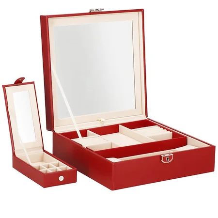 Etui za nakit iz eko usnja 25x25x8,5 cm, kostanjeva škatla s predelki