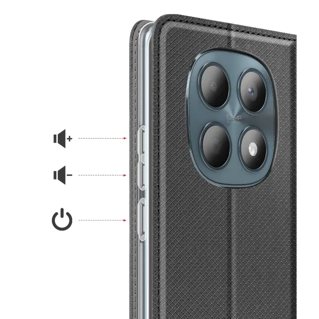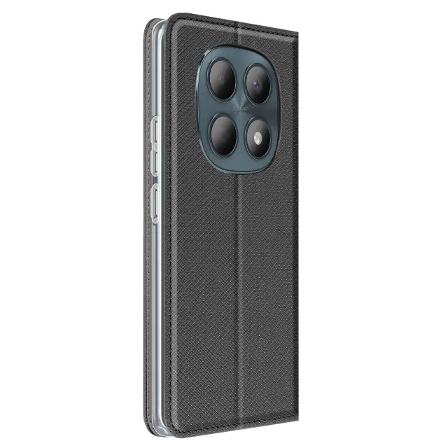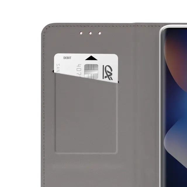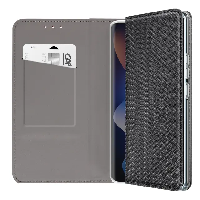 Ta denarnica za telefon Redmi Note 15 5G ima rebrasto površino s čvrstim otipom in trezno črno barvo s satenastim zaključkom.. V notranjo režo, izrezano v zavihku, lahko vstavite bančno kartico ali značko.. Gladka notranja podloga ščiti zaslon pred drgnjenjem pri zapiranju zavihka. Prozorna notranja lupina TPU ohranja stabilnost pametnega telefona in absorbira vsakodnevne udarce.