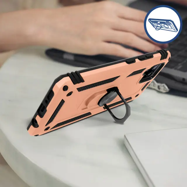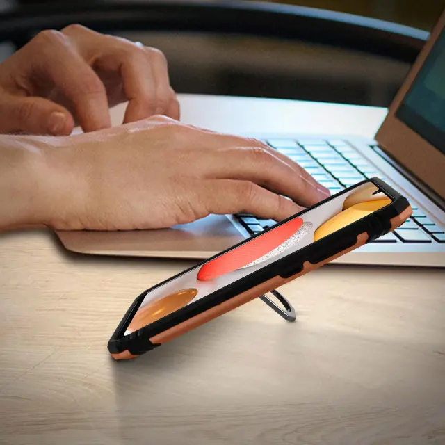 Preklopna torbica posebej oblikovana za Samsung Galaxy A42. Učinkovito ščiti vaš pametni telefon pred vsakodnevnimi udarci in praskami. Zadnji podporni obroč za varno uporabo v vseh okoliščinah. Spremenite svoj prstan v vodoravno ali navpično stojalo za uživanje v videoposnetkih in fotografijah.
