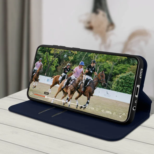 Etui za Samsung Galaxy A02s, držalo za kartico in video, magnetni zavihek - polnocno modra