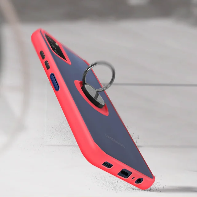 Etui za Samsung Galaxy A03S, odporen proti udarcem, z držalom za prstan - rdec