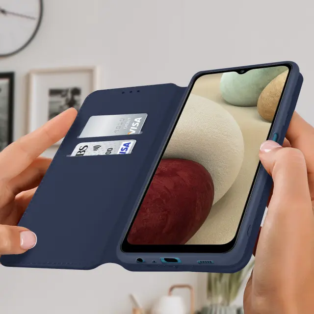 Ovitek za Samsung Galaxy A12 za popolno zašcito vašega mobilnega telefona pred udarci in praskami. Ta ovitek za Samsung Galaxy A12 ima prostor za shranjevanje kartic. Zašcita Samsung Galaxy A12 z modularno loputo, ki služi kot video podpora.