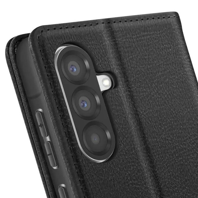 Elegantna in vsestranska zaščita s prefinjenim dizajnom iz zrnatega usnja. Uživajte v integrirani video podpori, ki je idealna za filme in prostoročne klice. Kartice in zapiske lahko shranite v več praktičnih predalčkih. Varno magnetno zapiranje omogoča, da ostanejo vaši predmeti na svojem mestu..