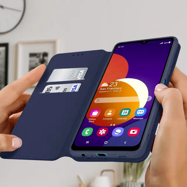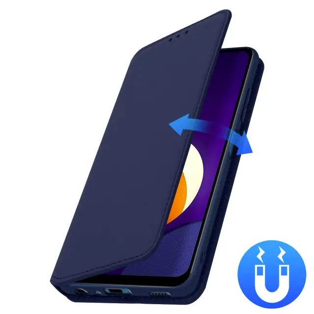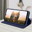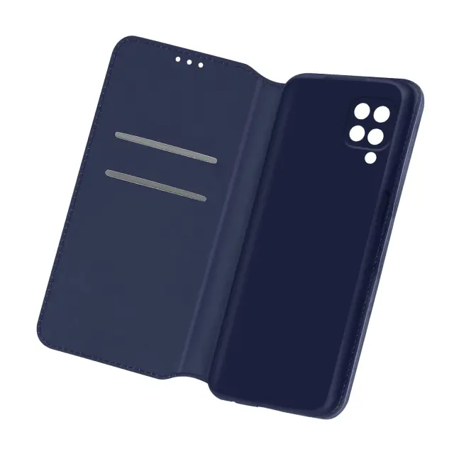 Etui za Samsung Galaxy M12, držalo za kartico in video, magnetni zavihek - polnocno modra