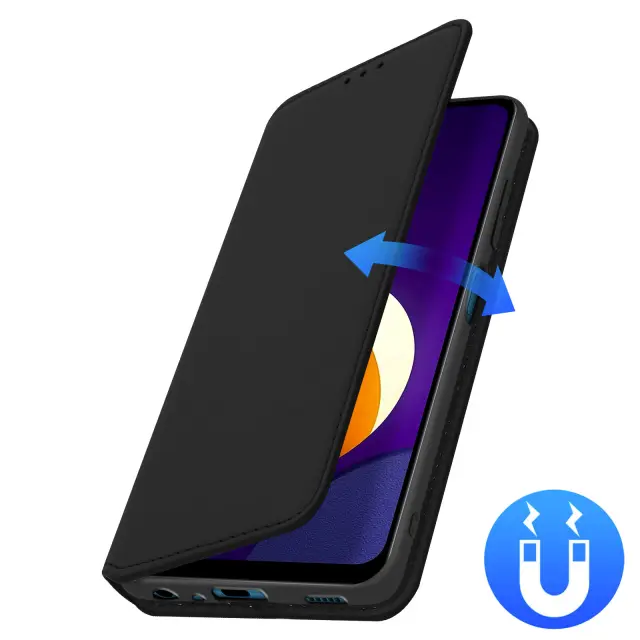 Etui za Samsung Galaxy M12, držalo za kartico in video, magnetni zavihek - crn