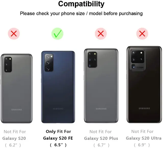 Natančni izrezi: Ovitek za telefon ima natančen dizajn in natančne izreze za Samsung Galaxy S20 FE / S20 Lite, kar pomeni, da vam ovitka nikoli ne bo treba sneti, ko ga nadenete. Vedno boste imeli popoln dostop do vseh vtičnic in vrat na vašem pametnem telefonu.