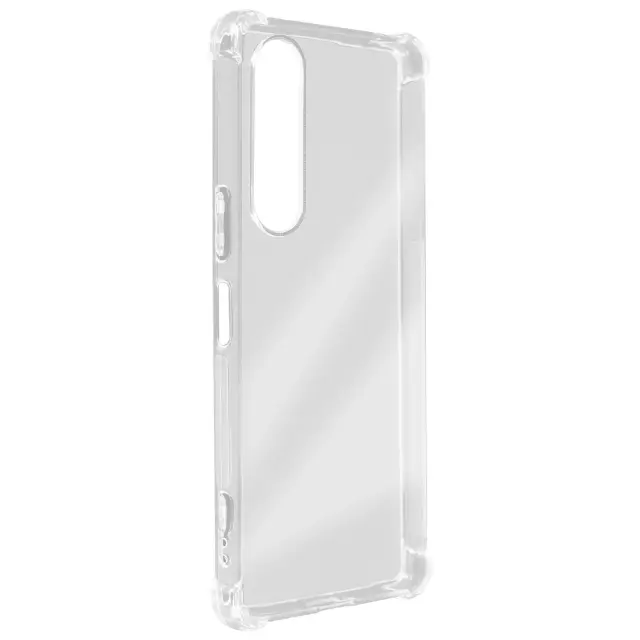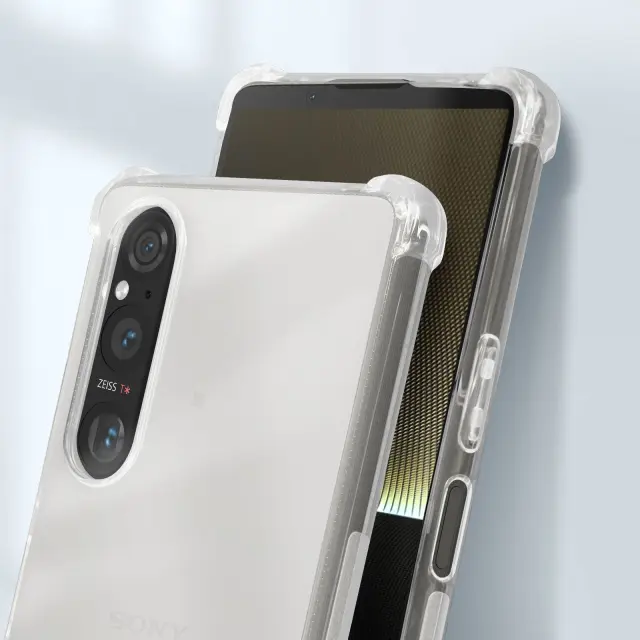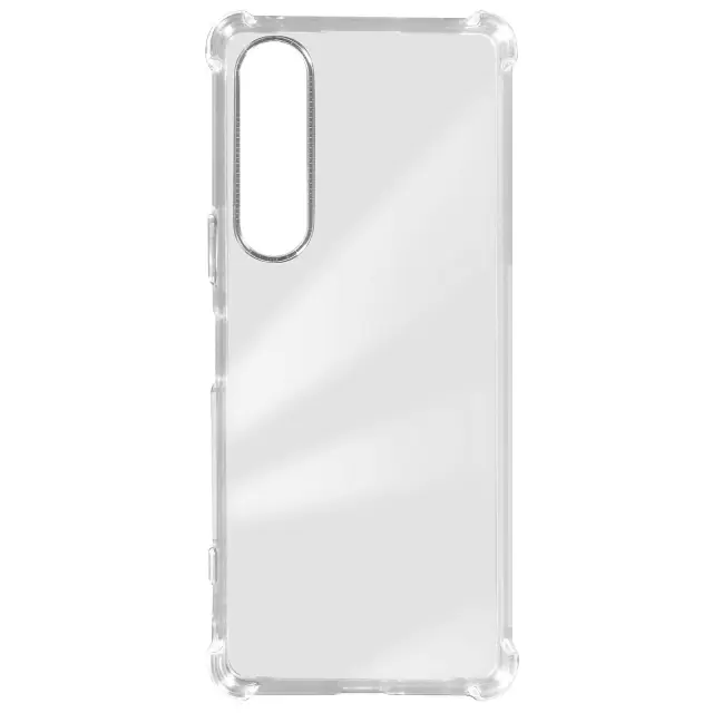 Mehka torbica Sony Xperia 1 V z vogali, odpornimi proti udarcem, serija Classic Bump. Prozorna zašcita Sony Xperia 1 V, zaradi katere je dizajn mobilnega telefona viden. Izjemno tanek in po meri izdelan ovitek za Sony Xperia 1 V z dvignjenimi robovi pri kameri in zaslonu.