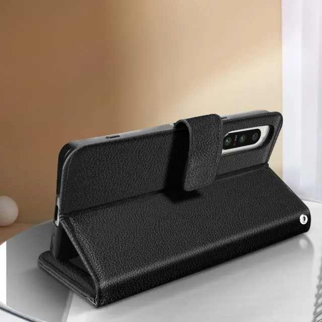 Etui za Sony Xperia 5 IV Video Stand Wallet iz umetnega usnja crn