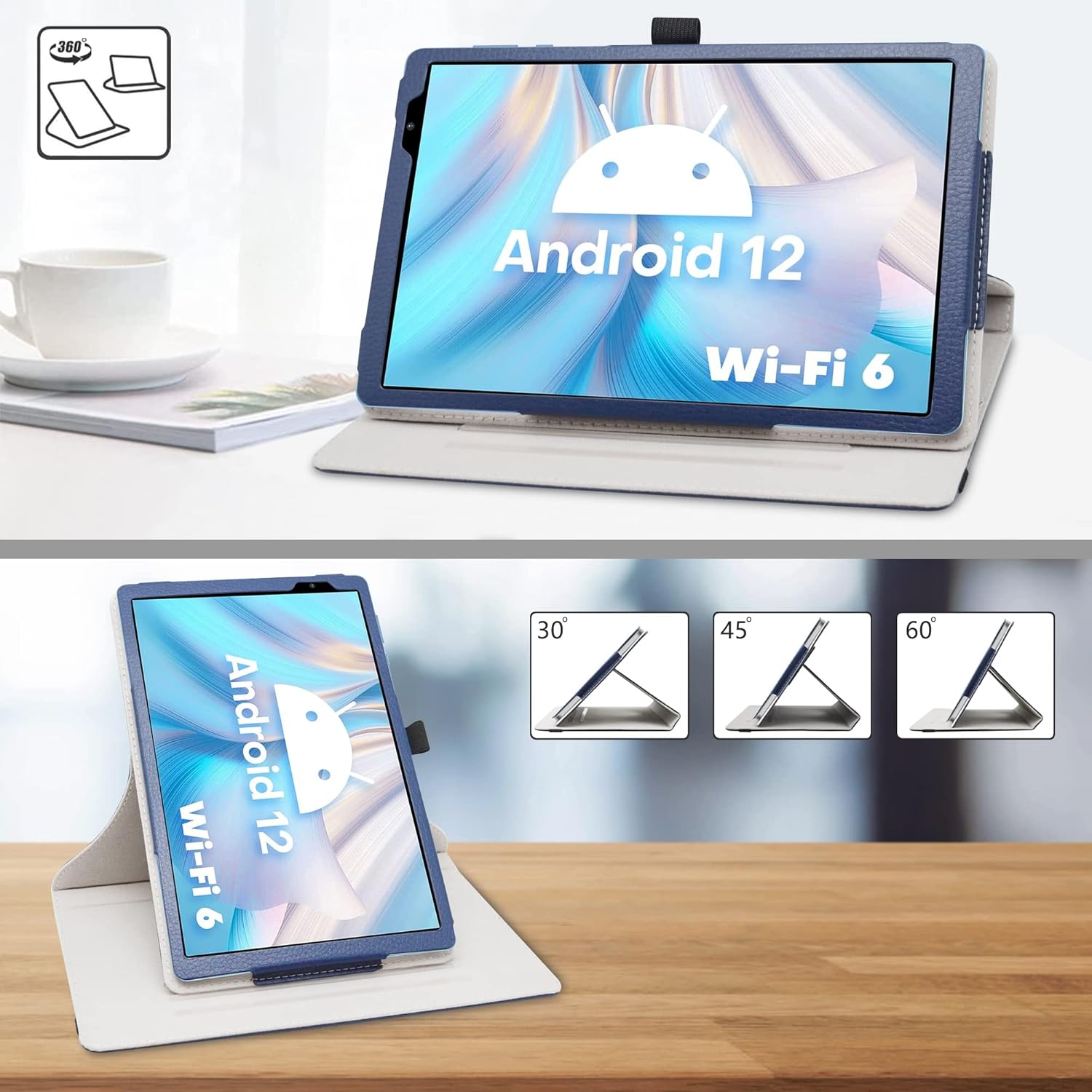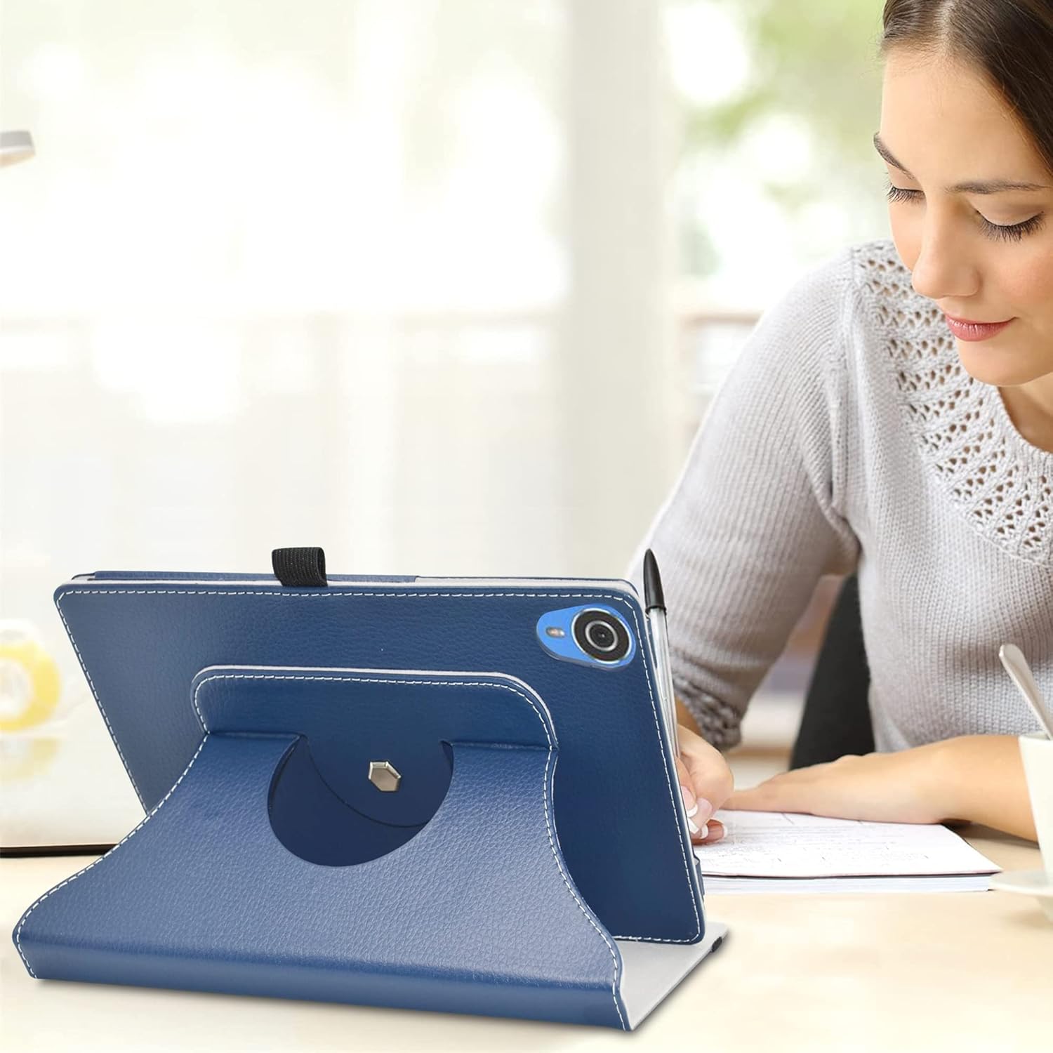 Modri etui za tablični računalnik TECLAST P25T z diagonalo 10,1 palca je funkcionalen ovitek, zasnovan za udobje in zaščito vaše naprave. Izdelan je iz visokokakovostnega sintetičnega PU usnja, ki učinkovito ščiti tablico pred prahom, praskami, udarci in drugimi mehanskimi poškodbami med vsakodnevno uporabo. Edinstvena zasnova omogoča 360-stopinjsko vrtenje, kar uporabniku omogoča postavitev naprave v navpični ali vodoravni položaj glede na trenutne potrebe. Ovitek je idealna rešitev za gledanje video vsebin, brskanje po spletu ali opravljanje pisarniškega dela, saj hkrati ohranja estetski videz naprave.