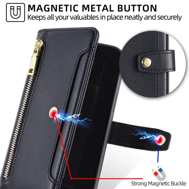 Varno in zaščitno: Etui ima varno magnetno zapiranje, ki varuje vaš telefon in vaše stvari. Trpežen zunanji del iz PU usnja in mehka notranjost iz TPU zagotavljata odlično zaščito pred praskami, udarci in padci.