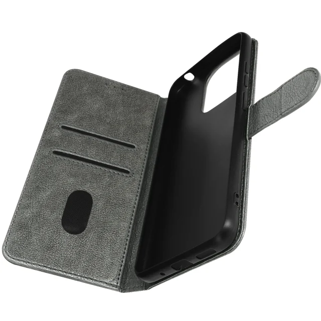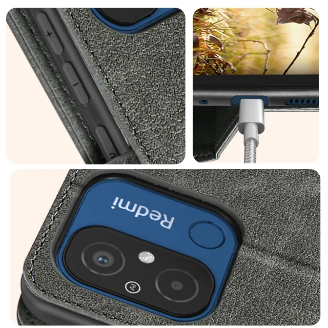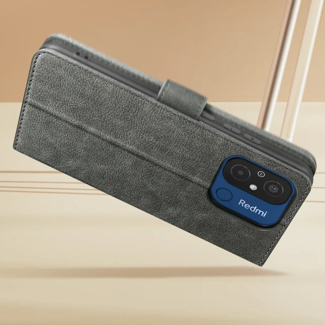 Etui za Xiaomi Redmi 12C flip card držalo video podpora funkcija siva