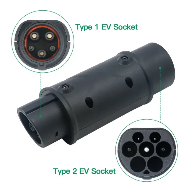 EV adapter, IP55 ocena, lahka zasnova, širok temperaturni razpon, tip 2 do tip 1, tip 2 do tip 1