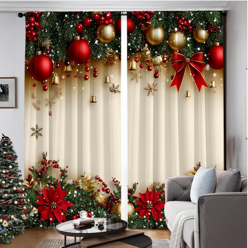 Evropske božične okrasne zavese (komplet 2) - Poliestrske praznične zavese S
