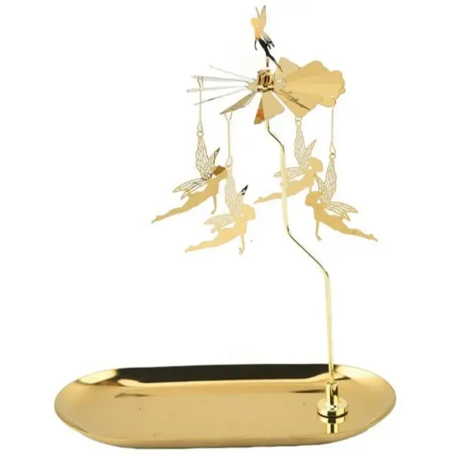 Umetniška dekoracija doma: Povzdignite dekoracijo svojega doma s tem izvrstnim svečnikom v evropskem slogu. Zapleten dizajn vključuje vrteči se vrtiljak s čarobnimi pravljičnimi figurami, ki ustvarja očarljiv prikaz svetlobe in gibanja. Popoln za dodajanje elegance vsakemu prostoru, ta svečnik je več kot le funkcionalen predmet; je umetniško delo. Nežna svetloba sveče v kombinaciji z nežnim vrtenjem vil ustvarja pomirjujoče in čarobno vzdušje. Idealen za ustvarjanje sproščujočega vzdušja v večerih, posebnih priložnostih ali vsakodnevnem uživanju. Izdelan iz visokokakovostnega nerjavečega jekla z zlatim zaključkom, bo ta kos postal osrednja točka v vašem domu.