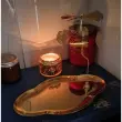 Elegantna dekoracija doma: Več kot le svečnik, ta kos je eleganten dekorativni poudarek. Zlati zaključek in zapleten srčni dizajn dodajata prefinjenost vsakemu prostoru. Ovalni pladenj velikosti 23 cm zagotavlja stabilno podlago in prispeva k vizualni privlačnosti držala. Postavite ga na jedilno mizo, kamin ali klubsko mizico, da takoj dvignete svoj dom. Vrtljiva funkcija dodaja dinamičen element, zaradi česar je očarljiv osrednji del.