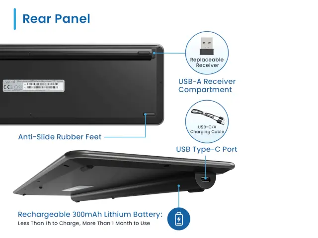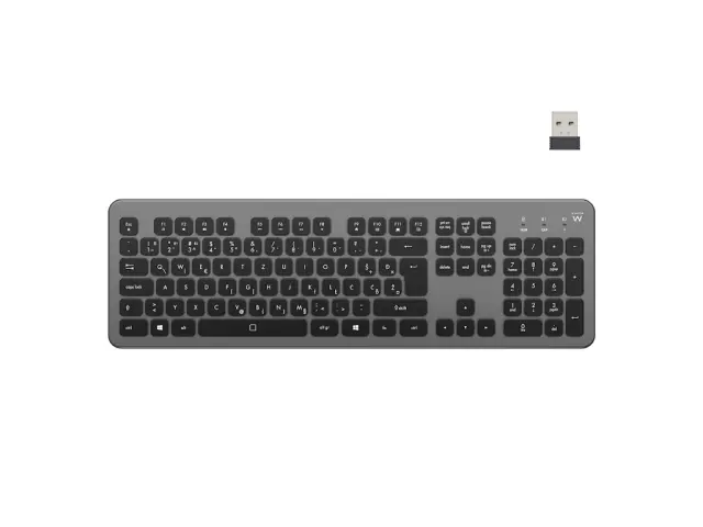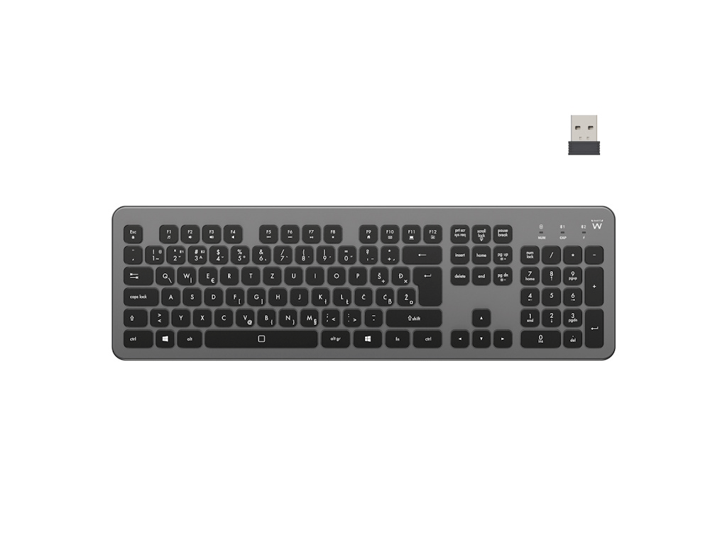 Tipkovnica ima tanko zasnovo z nizkoprofilnimi tihimi tipkami in 12 multimedijskimi funkijami, ki omogočajo hiter dostop do funkcij, kot so npr. nadzor glasnosti.