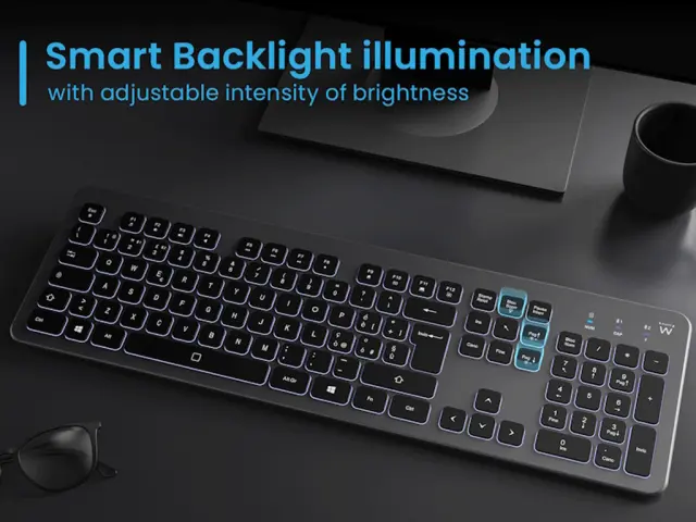 Tipkovnica ima nastavljivo osvetlitev tipk, ki izbojša vidljivost v temnejših prostorih.