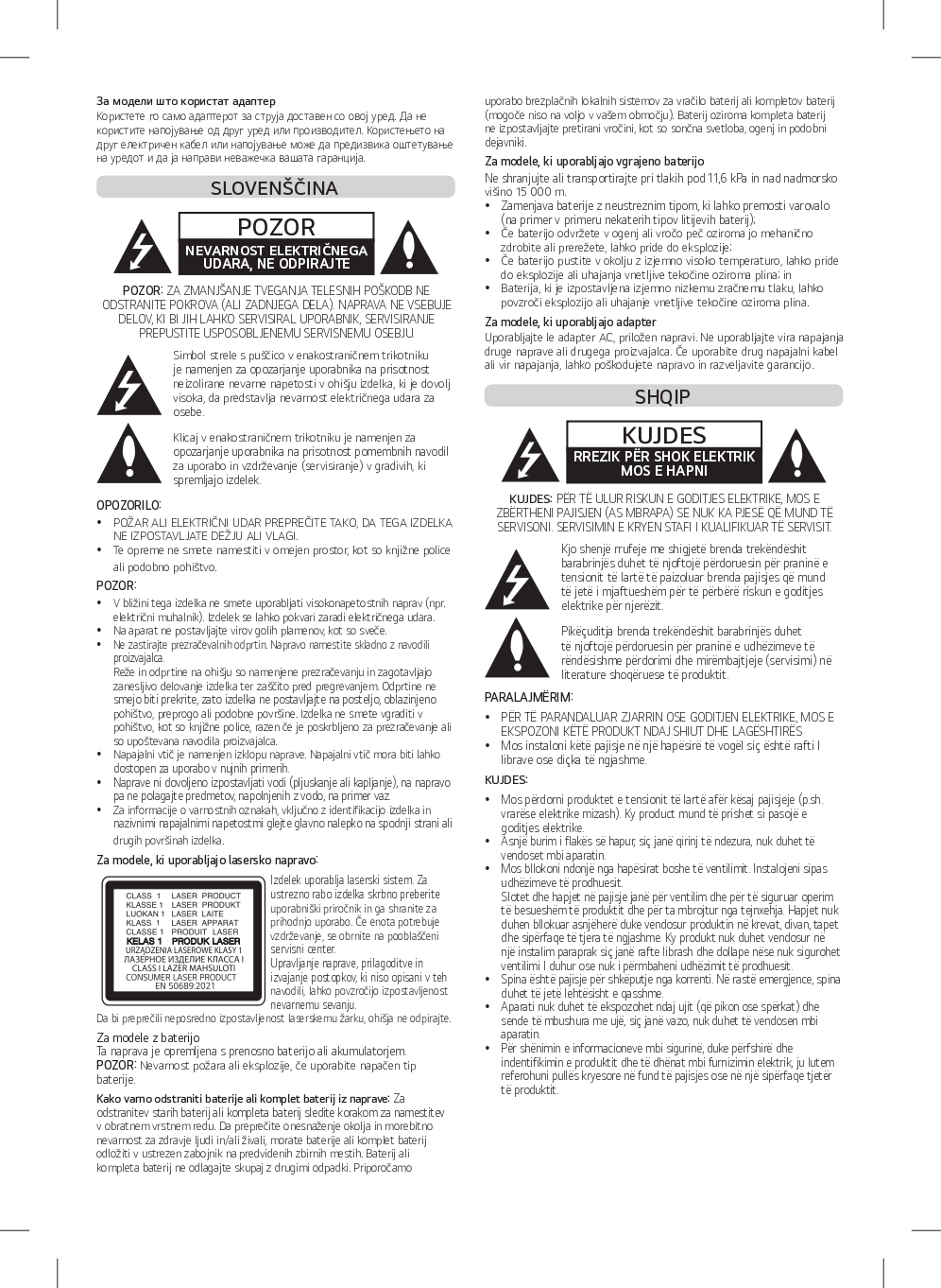 Slike o varnosti izdelka vsebujejo opozorila na embalaži izdelka in lahko vključujejo ključne varnostne informacije, povezane z določenim izdelkom.