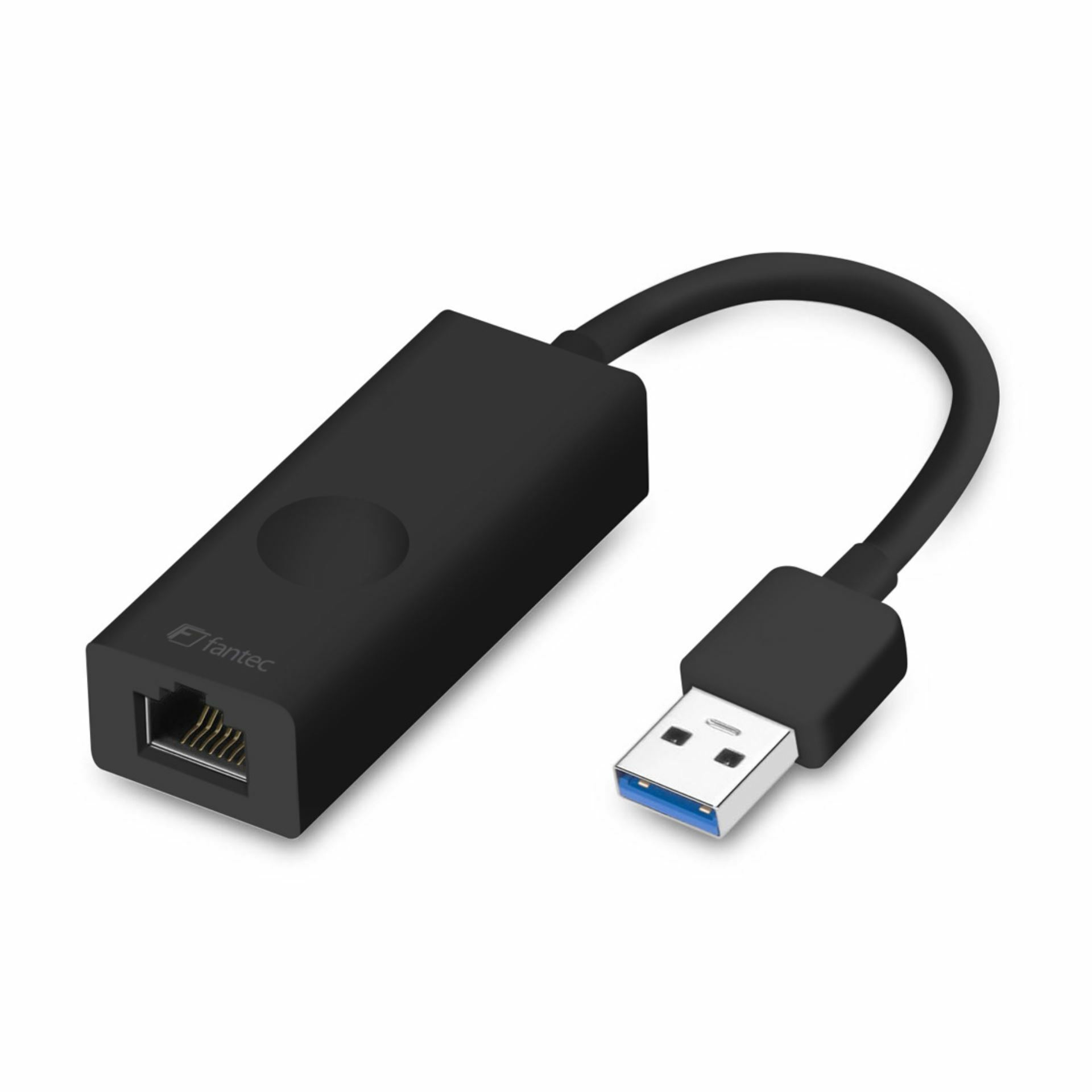 Fantec UMP-E1000 USB pretvornik omogoča pretvorbo prostega USB 3.2 Gen1 (USB 3.1 Gen1 / USB 3.0) tip-A vmesnika v gigabitni RJ45 vmesnik.