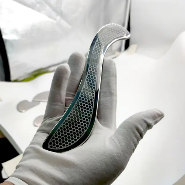 Profesionalna kakovost: Ta fascialni nož je izdelan iz visokokakovostnega nerjavečega jekla in je zasnovan za profesionalno uporabo. Njegova robustna konstrukcija zagotavlja dolgo življenjsko dobo in odpornost proti obrabi. Gladka, polirana površina brez težav drsi po koži, kar zmanjšuje trenje in povečuje udobje. Vzorec satovja zagotavlja boljši oprijem in nadzor med uporabo. Ta profesionalni fascialni nož je primeren za terapevte, kiropraktike in posameznike, ki iščejo zanesljivo in učinkovito orodje za strganje mišic za sprostitev fascije.