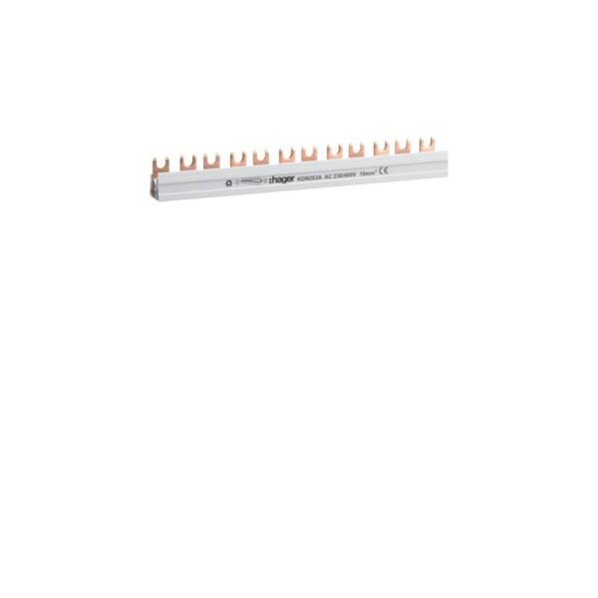 Na voljo je z: Hager busbar 2P,10qmm,12mod,vilice KDN263A, enota pakiranja: 1 kos, EAN: 3250613740917