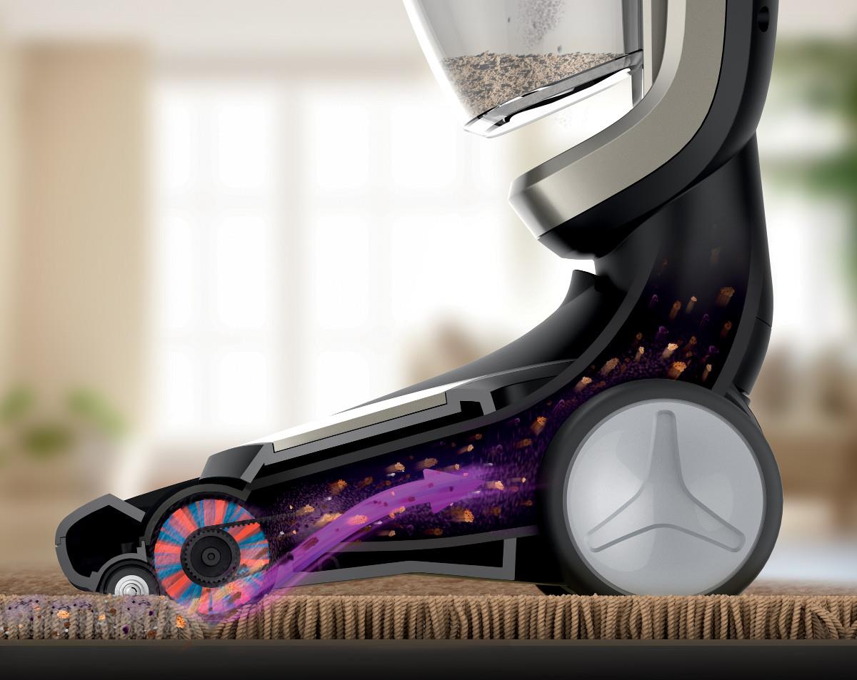 Tehnologija PowerCyclone omogoča visoko učinkovitost sesanja v enem koraku. Zrak hitro vstopi v PowerCyclone, kjer se pospešeno giba skozi ukrivljene kanale, kjer se učinkovito loči prah od zraka.