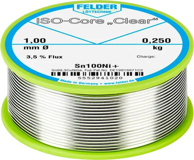 Felder ISO-Core ''Clear'' Sn100Ni+ spajkalna žica\, neosvinčena tuljava Sn99\,25Cu0\,7Ni0\,05 0.250 kg 1 mm