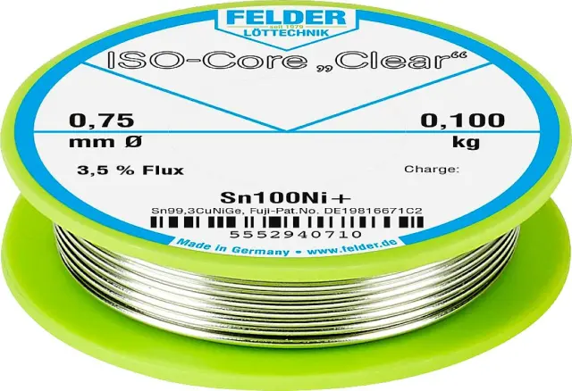 Felder ISO-Core ''Clear'' Sn100Ni+ spajkalna palica tuljava Sn99\,25Cu0\,7Ni0\,05 0.100 kg 0.75 mm