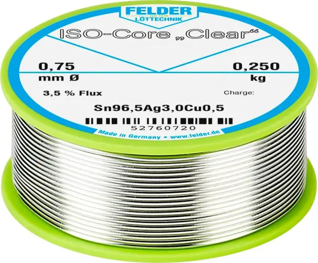 Felder ISO-Core ''Clear'' SAC305 spajkalna palica tuljava Sn96\,5Ag3Cu0\,5 0.250 kg 0.75 mm