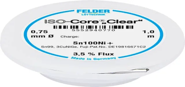 Felder ISO-Core ''Clear'' Sn100Ni+ spajkalna žica\, neosvinčena tuljava Sn99\,25Cu0\,7Ni0\,05 0.75 mm