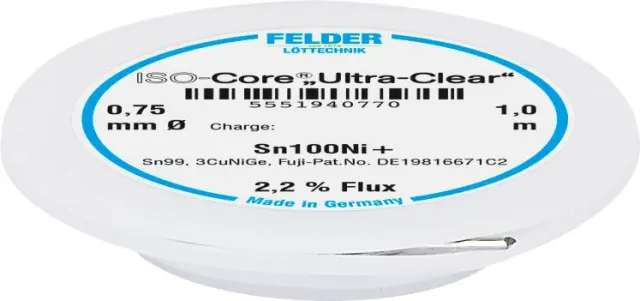 Felder ISO-Core ''Ultra-Clear'' Sn100Ni+ spajkalna žica\, neosvinčena tuljava Sn99\,25Cu0\,7Ni0\,05 0.75 mm