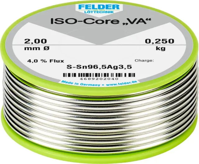 Felderjeva tehnologija spajkanja ISO-Core ''VA'' Sn96.5Ag3,5 - 0,250 kg/2mm Felder ISO-Core ''VA'' spajkalna palica tuljava Sn96,5Ag3,5 0.250 kg 2 mm