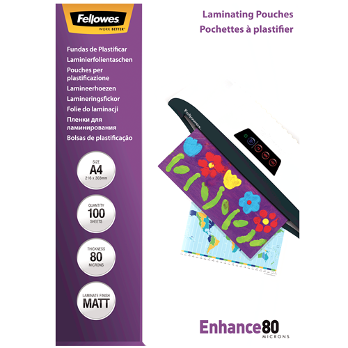 Fellowes žepki za plastificiranje A4, mat, 80 mic, 100 kosov