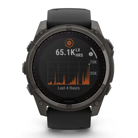 Vrhunsko oblikovana ura je izdelana za zahtevne razmere in je vodotesna za potapljanje, ima neprepustne gumbe, kovinski zaščitni pokrov senzorjev in stalno vklopljen 1,4 zaslon za polnjenje s sončno energijo s steklom, odpornim proti praskam, in okvirom iz titana. Preskušena je v skladu z ameriškimi vojaškimi standardi za odpornost na toploto in udarce ter za vodotesnost.