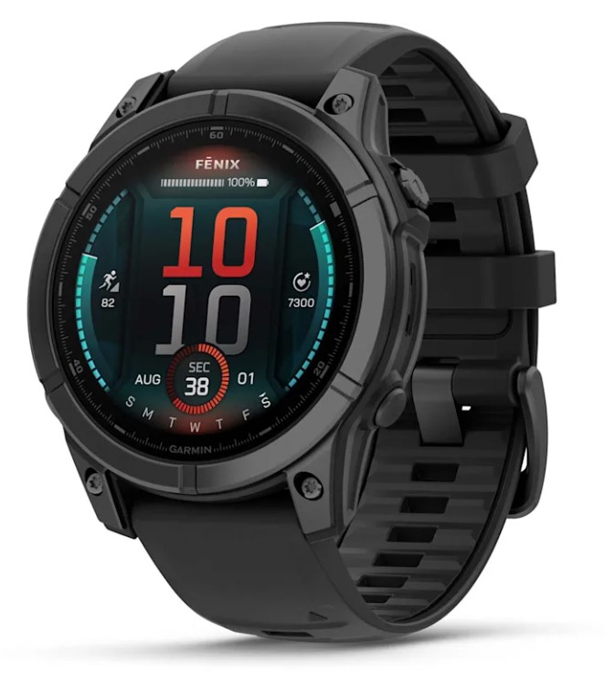 Odprta emb - GARMIN Fenix E 47 mm, Skrilasto siv model iz jekla s črnim silikonskim paščkom