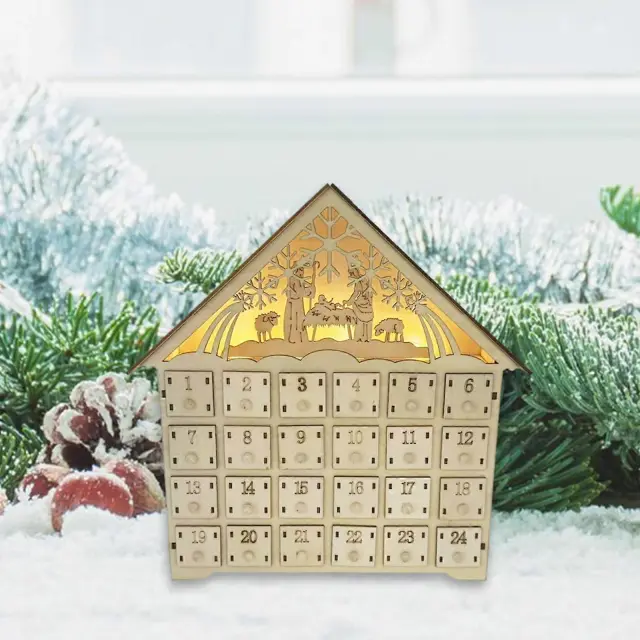 Festivalski leseni adventni koledar Prenosni leseni adventni koledar z LED lučko in predali 24 dni do božiča