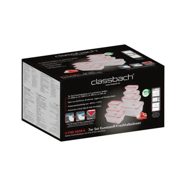 - Ohranja 100 % tesnost zaradi praktičnega 4-stranskega zapiranja Click & Safe in visoke kakovosti zaradi silikonskega tesnila v pokrovu