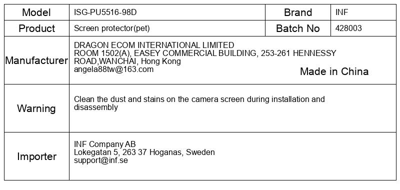 Podatki o proizvajalcu vključujejo informacije (naziv, naslov, državo in elektronski naslov) povezane s proizvajalcem izdelka.