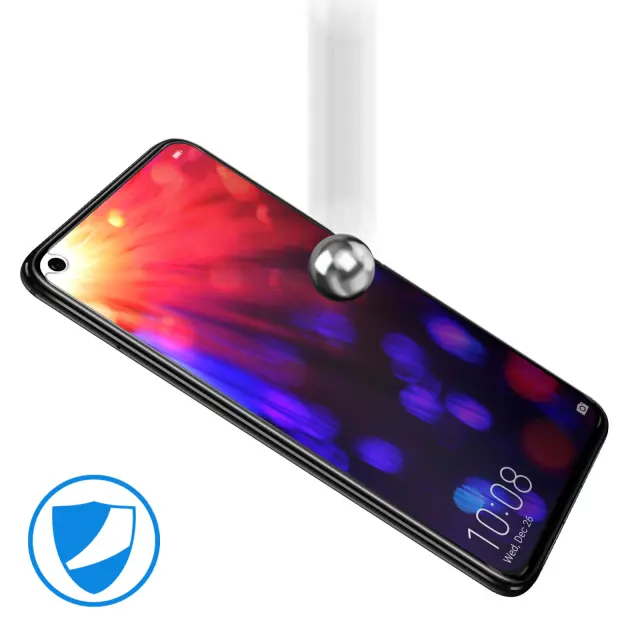 Ta zašcitna folija iz kaljenega stekla v celoti pokriva zaslon vašega Honor View 20. Izjemno odporen in izjemno tanek ga šciti pred udarci in praskami, hkrati pa ohranja otipljivo tekocnost in barvno upodabljanje.