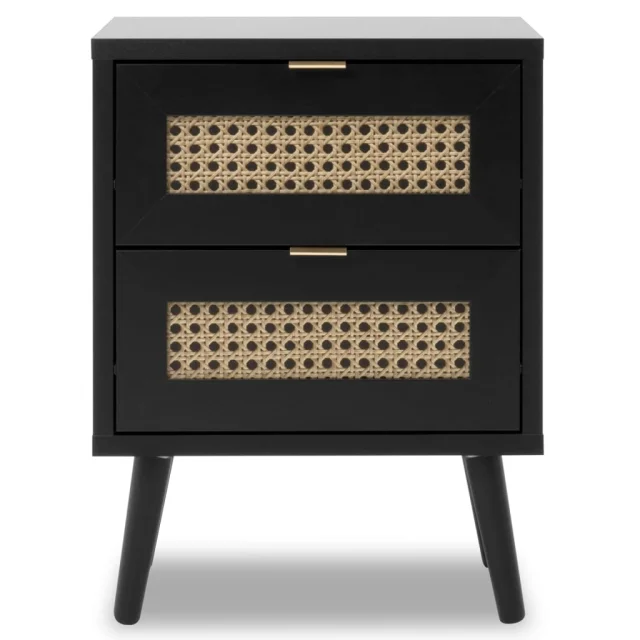 Finori Nočna omarica Vienna 61A črna in potisk ratana