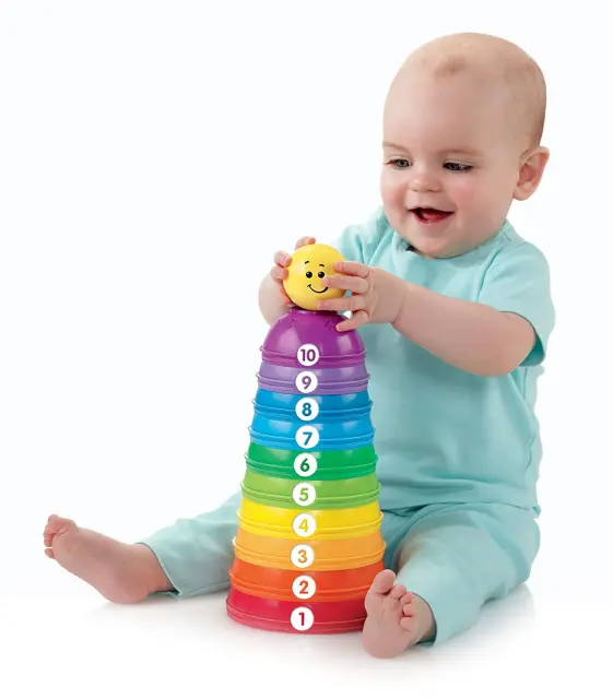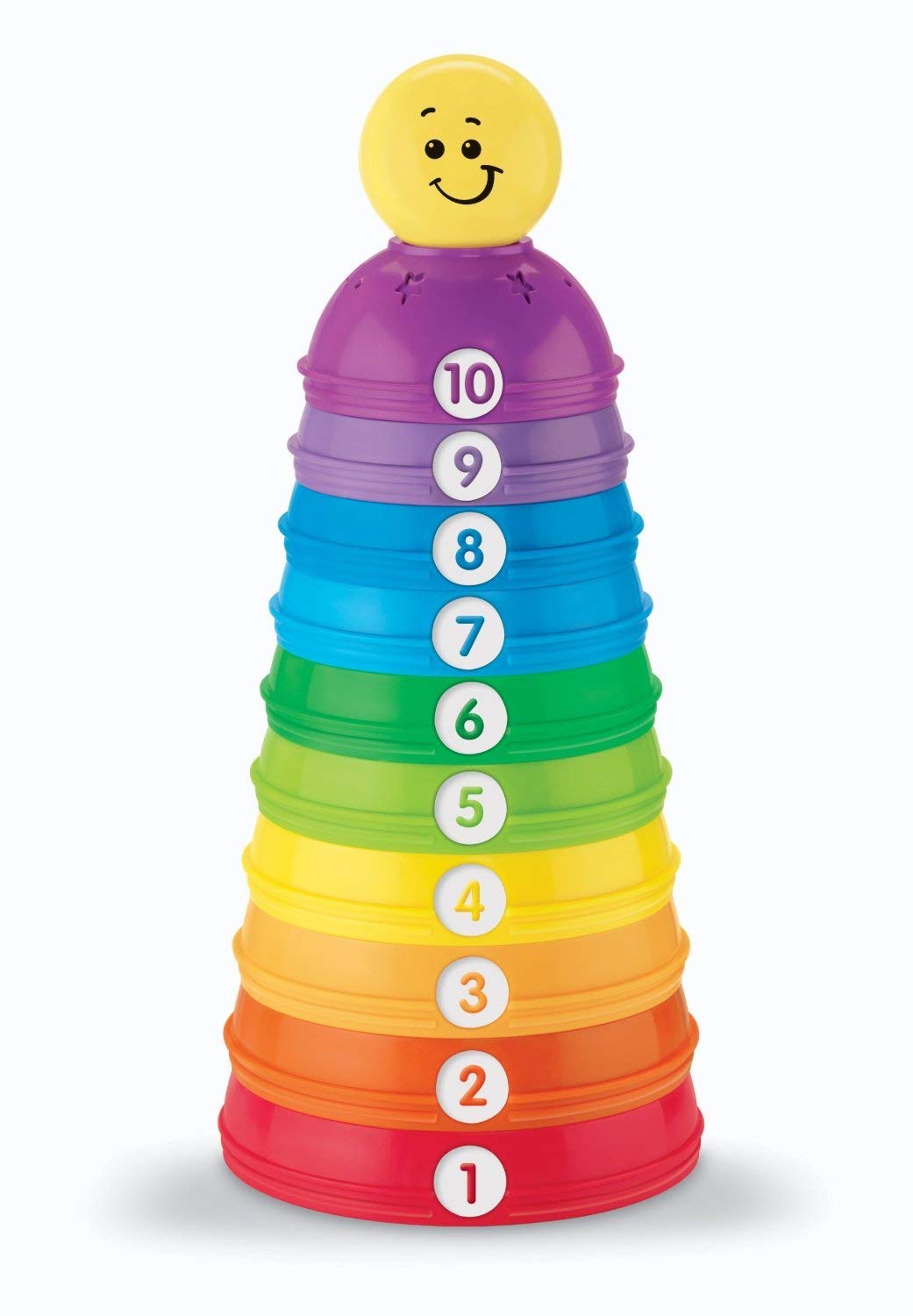 10 barvitih, številčenih skodelic za sestavljanje, gnezdenje ali povezovanje in valjanje.