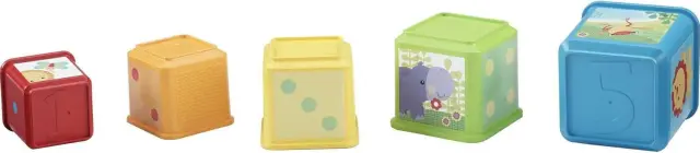 Odkrijte svet sestavljanja, gnečenja in senzorične zabave s Fisher-Price Stack & Explore Blocks! Vsaka kocka s 5 stranmi je zasnovana z živahnimi barvami, zanimivimi teksturami, ljubkimi liki, številkami in znanimi predmeti. Dojenčki lahko kocke sestavljajo, gnečejo ali jih postavijo ena ob drugo, da ustvarijo barvite prizore.
