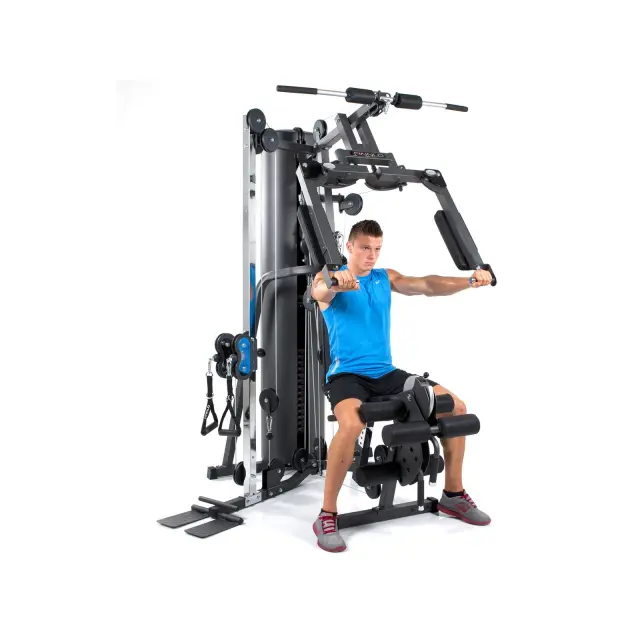 K napravi je priložen triceps in lat priključek ter par enoročnih pulley priključkov. Priključki se lahko uporabljajo na različnih pozicijah na fitnes napravi. Zahvaljujoč sistemu, ki omogoča gibanje za kar 160°C lahko izvajate enoročni poteg na kar dveh kablih hkrati. Tovrstne vaje ustvarjajo funkcionalni stres na telo in stabilizirajo jedro telesa.