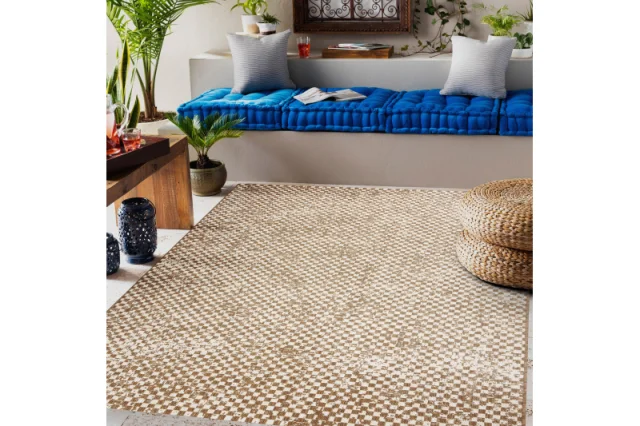 FLAT 48955265 Preproga iz sisala Geometric - naravna bež slamnata barva, vrvica 200x290 cm
