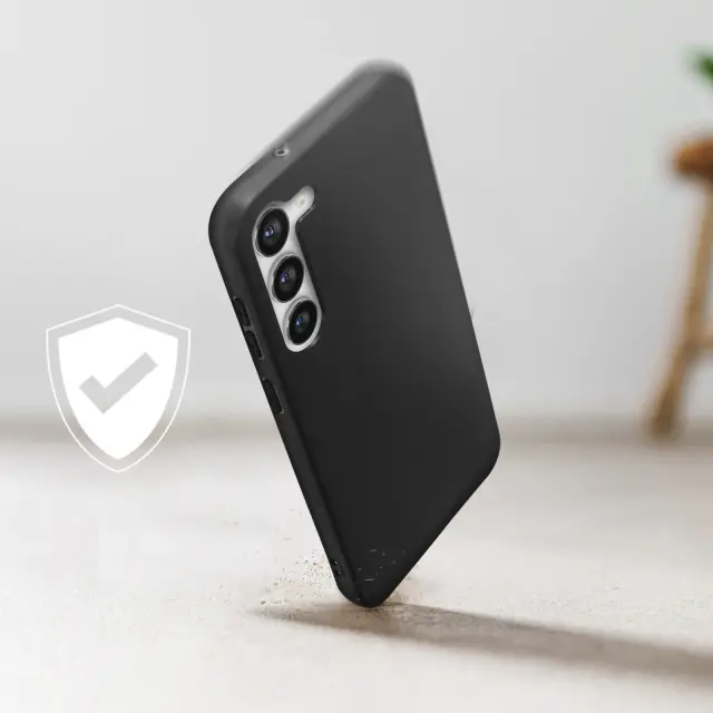 Ovitek za Samsung Galaxy S23 Plus iz mehkega in tankega crnega silikona. Ta zašcita šciti vaš telefon pred rahlimi udarci in praskami, je prožna in odporna. Njegova umirjena oblika nudi eleganten videz vašega mobilnega telefona. Dostopne funkcije.